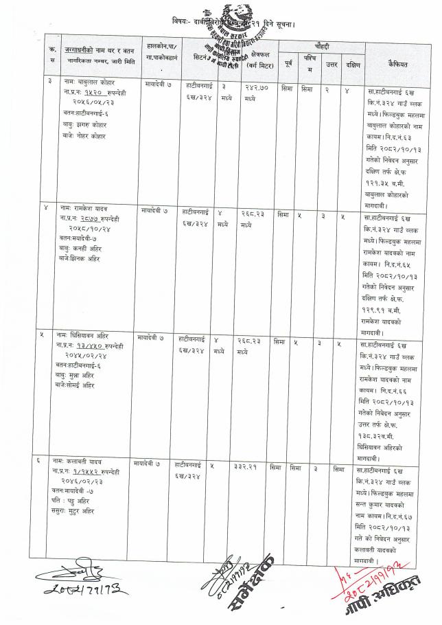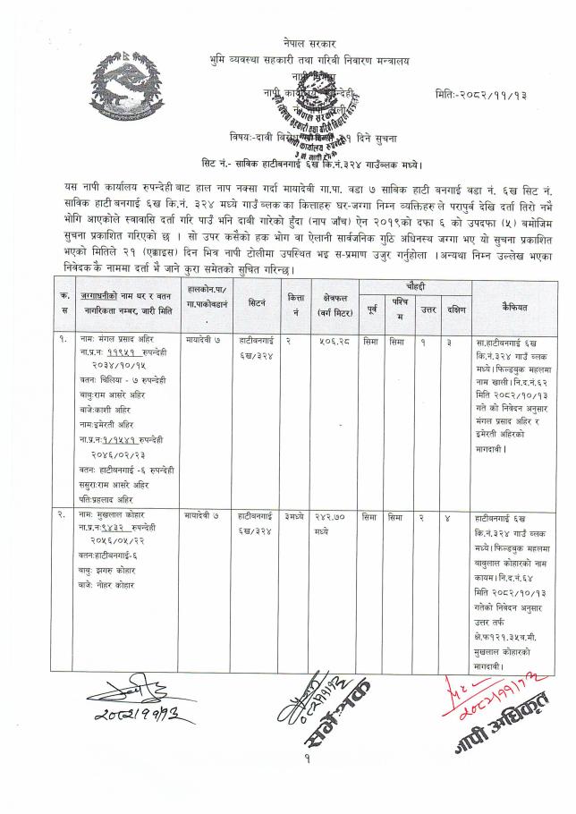 नापी कार्यालय, रुपन्देही , ३ नं. नापी टोली, भैरहवाको दावी विरोध सम्बन्धी २१ दिने सूचना !!!