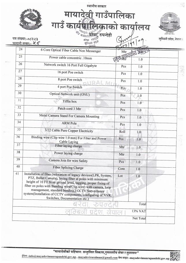 INVITATION FOR BIDS (D.O.F.P. :- 06,Feb, 2026) - Mayadevi Rural Municipality, Barewa, Rupandehi.