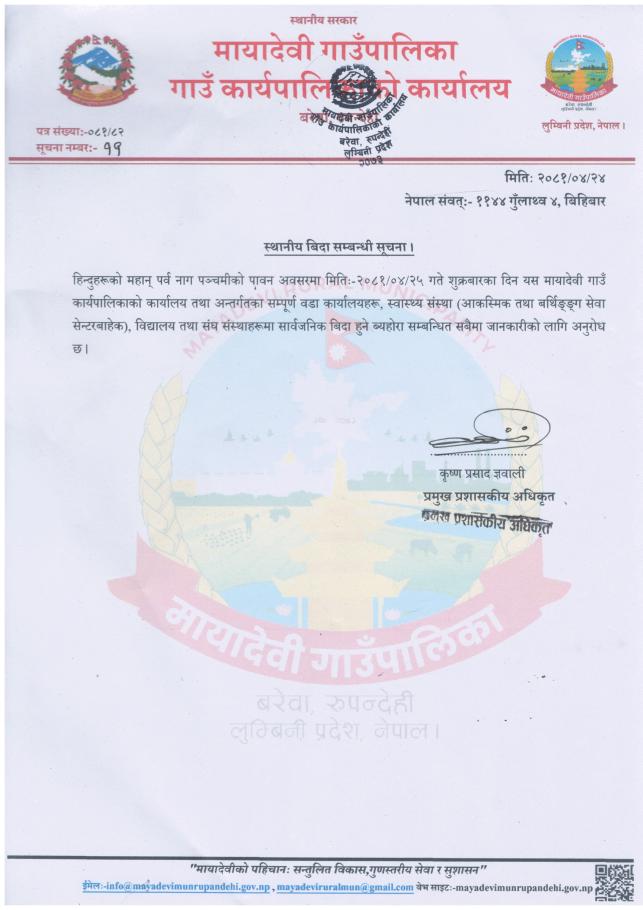 स्थानीय बिदा सम्बन्धी सूचना !!!