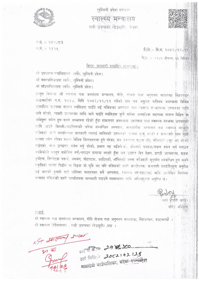 जानकारी सम्बन्धमा - स्वास्थ्य संस्थाहरु सबै, मायादेवी गाउँपालिका, बरेवा, रुपन्देही ।