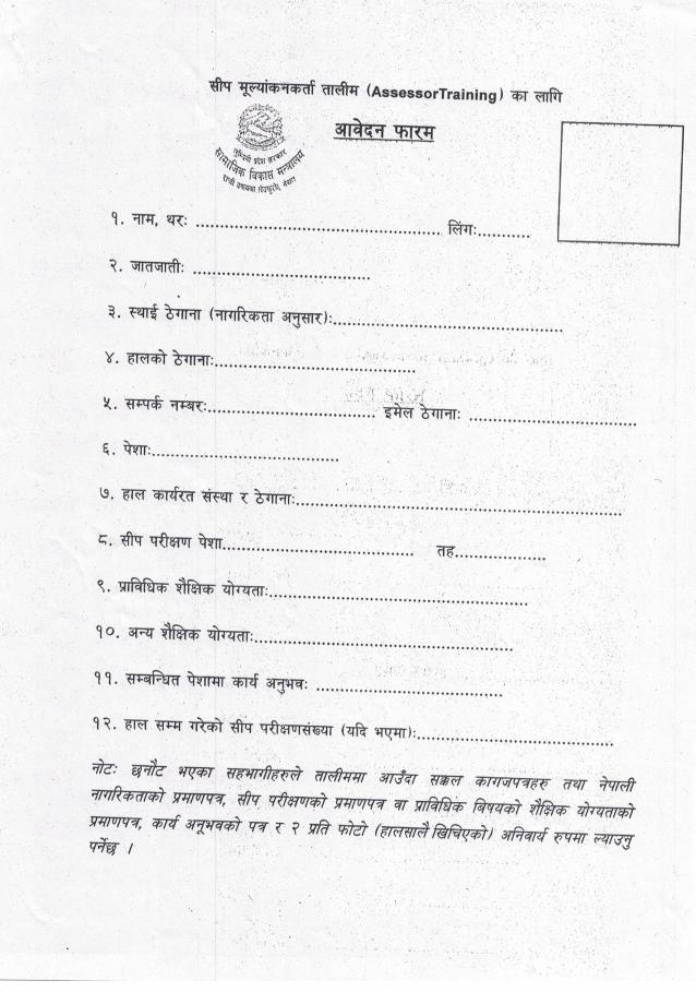 Home » सीप परीक्षण मल्याङकनकर्ता (Skill Test Assessor) तालिम सहभागी आवेदन आह्वान सम्बन्धी सूचना - सामाजिक विकास मन्त्रालय, राप्ती उपत्यका (देउखुरी), नेपाल ।