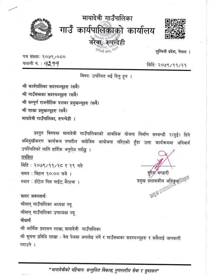 » उपस्थित भई दिनुहुन - मायादेवी गाउँपालिका,बरेवा-रुपन्देही ।