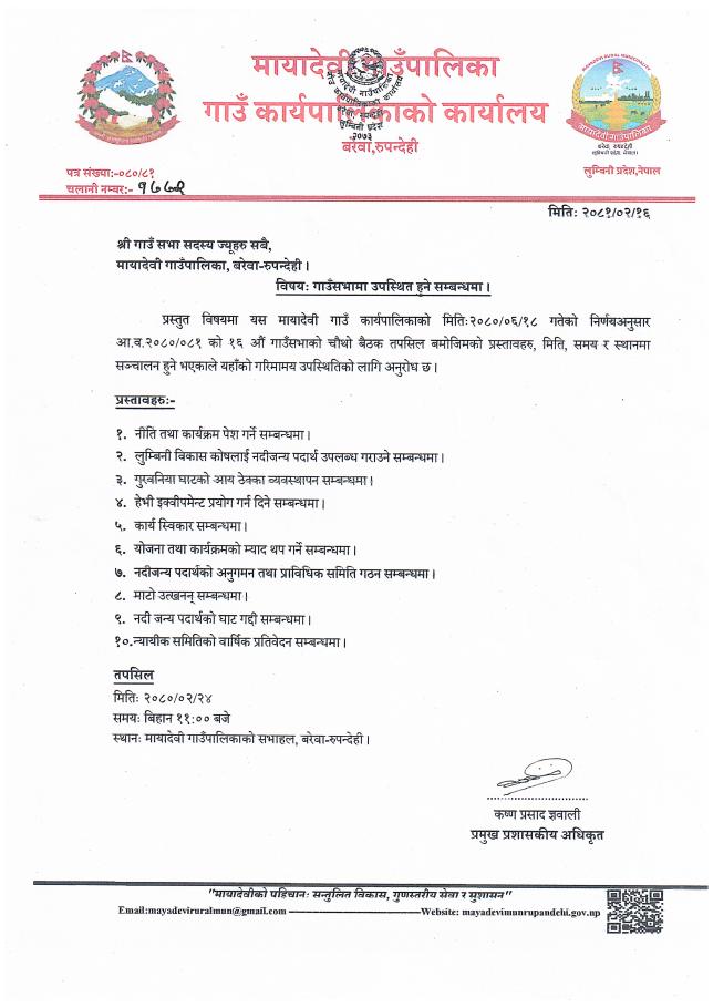 गाउँसभामा उपस्थित हने सम्बन्धमा। - मायादेवी गाउँपालिका, बरेवा-रुपन्देही ।