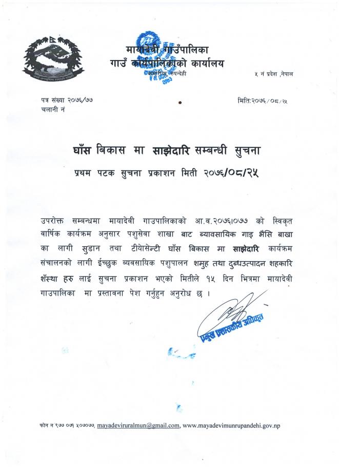 » घाँस विकासमा साँझेदारि सम्बन्धी सूचना