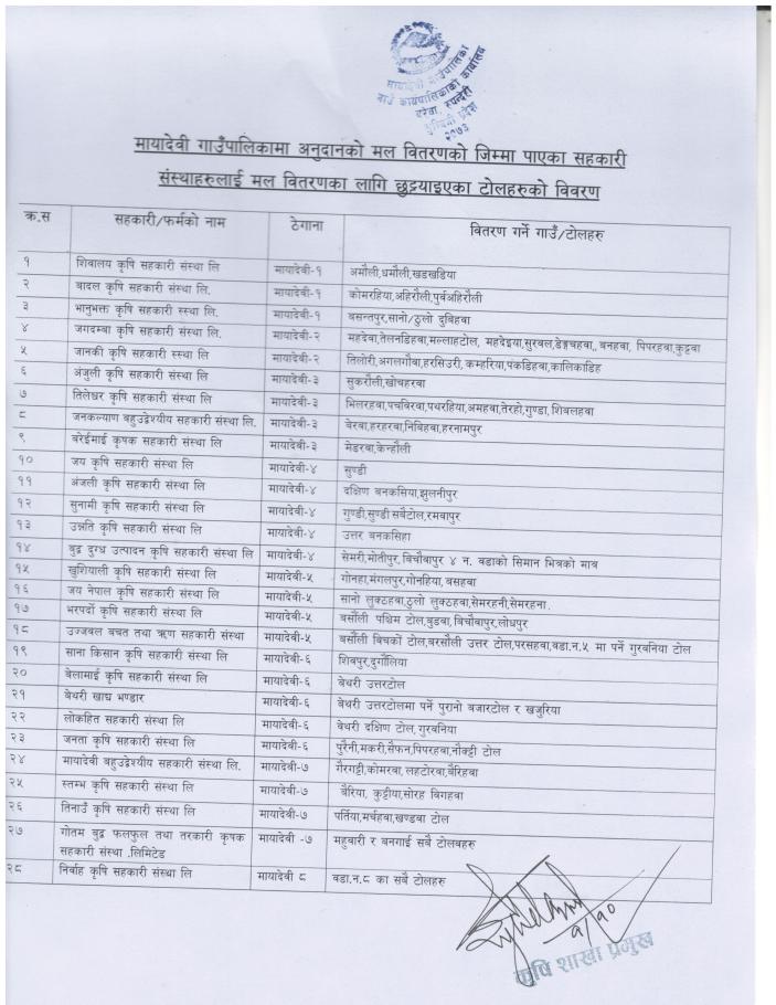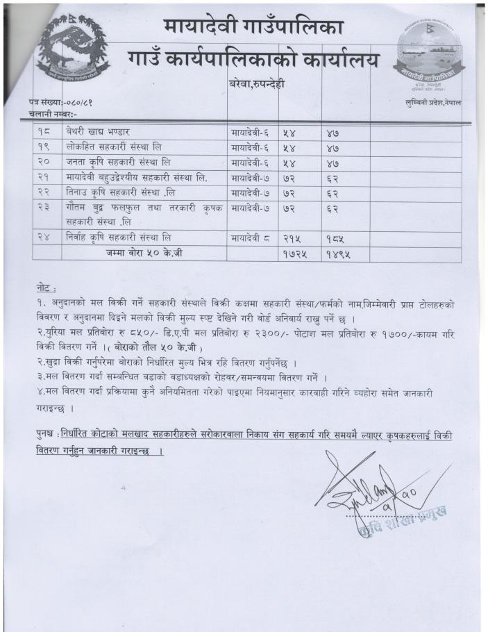 » जानकारी तथा युरिया मल ल्याई वितरण गर्ने सम्बन्धमा - श्री सरोकारवाला सबै, मायादेवी गाउँपालिका, बरेवा-रुपन्देही ।