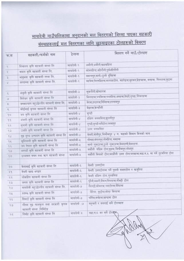 » जानकारी तथा युरिया मल ल्याई वितरण गर्ने सम्बन्धमा - श्री सरोकारवाला सबै, मायादेवी गाउँपालिका, रुपन्देही ।