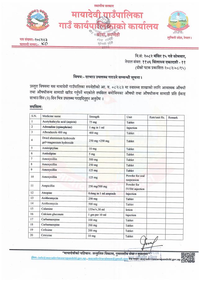 दरभाउ उपलब्ध गराउने सम्बन्धी सूचना - मायादेवी गाउँपालिका, बरेवा-रुपन्देही ।