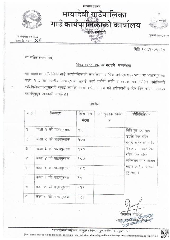 सूचना - मायादेवी गाउँपालिका, बरेवा-रुपन्देही ।