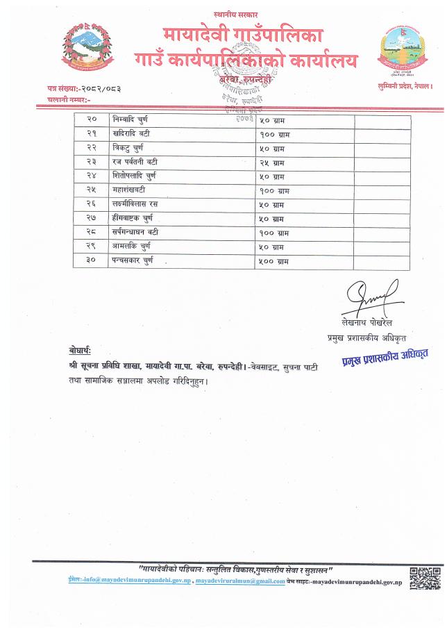 यरिया मल ल्याई वितरण गर्ने सम्बन्धमा - मायादेवी गाउँपालिका, बरेवा-रुपन्देही ।