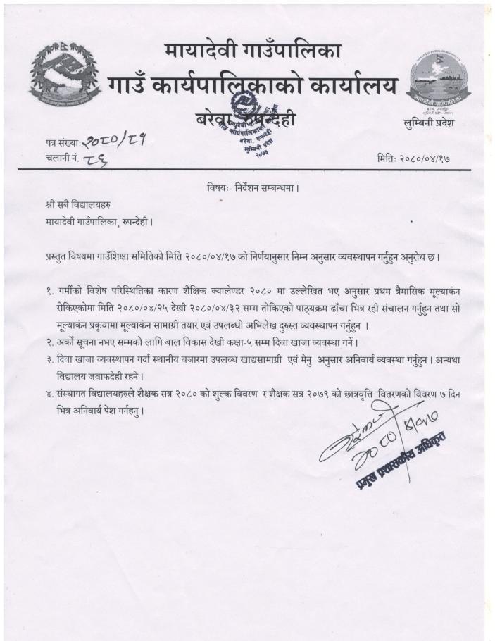 निर्देशन सम्बन्धमा - मायादेवी गाउँपालिका, बरेवा-रुपन्देही ।