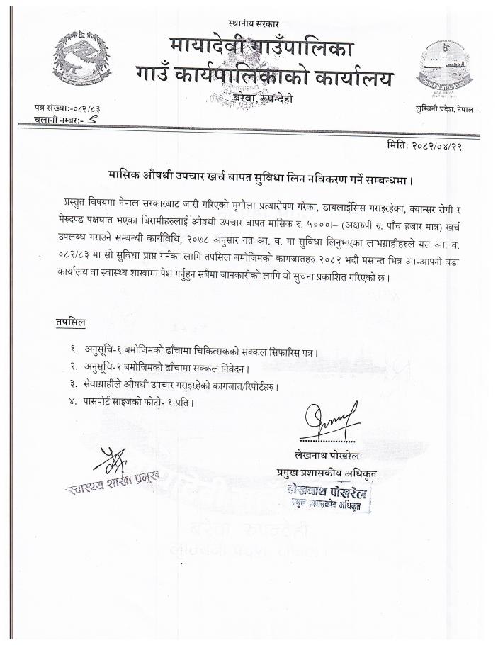 » मासिक औषधी उपचार खर्च बापत सुविधा लिन नविकरण गर्ने सम्बन्धी सूचना !!!
