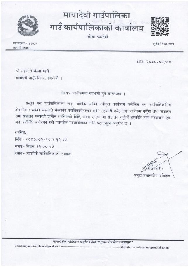 श्री सहकारी संस्था (सबै), मायादेवी गाउँपालिका,बरेवा-रुपन्देही ।