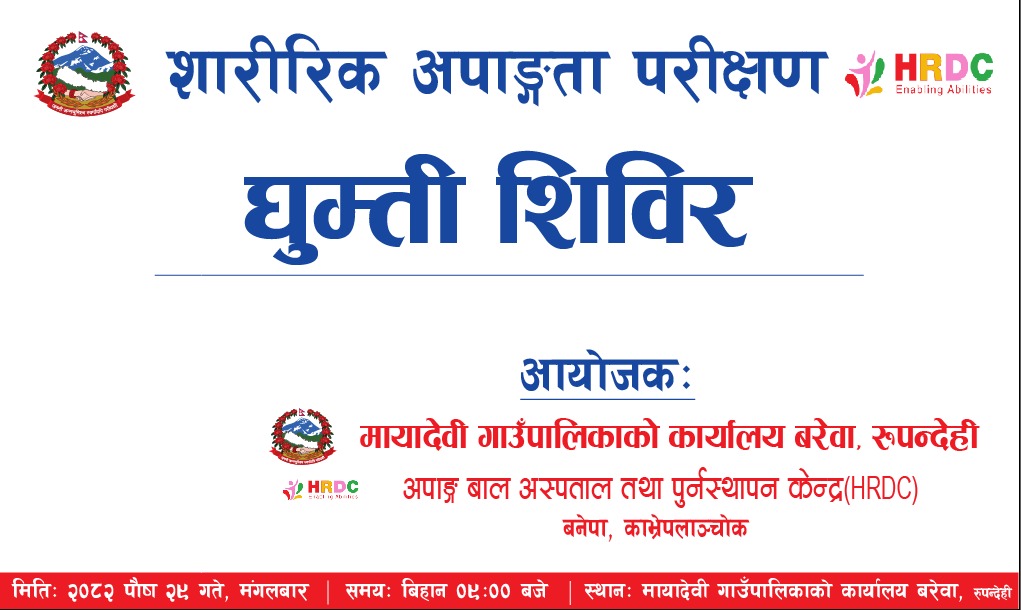विशेषज्ञ सेवासहितको निःशुल्क स्वास्थ्य शिविर शनिबार मायादेवी गाउँपालिकामा