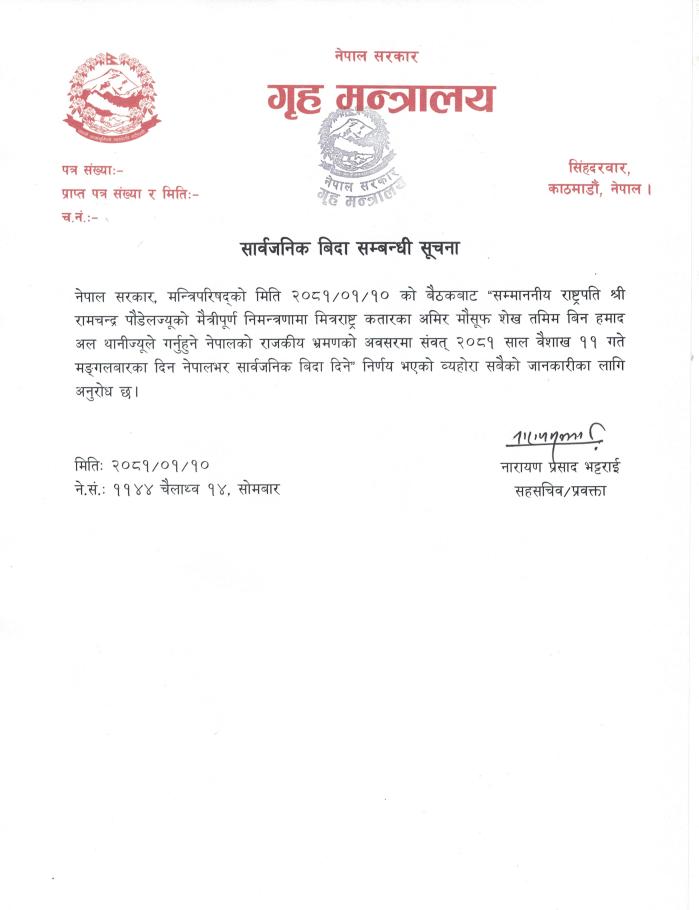 » सार्वजनिक बिदा सम्बन्धी सूचना