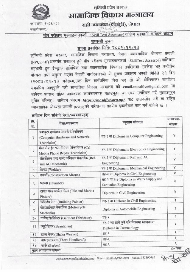 सीप परीक्षण मूल्याङकनकर्ता तालिम मा सहभागी हुन फारम भर्ने समबन्धी सुचना