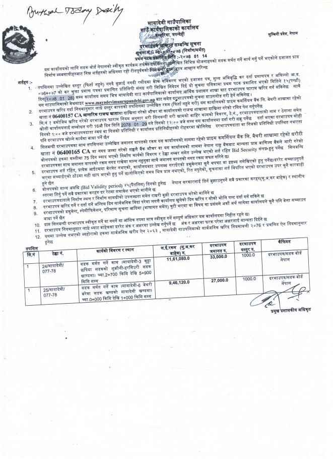 "सुचना नं. ०६-०७७-०७८ (निर्दमाण/मर्रमत)" दरभाव पत्र आह्वान सम्बन्धि सुचना