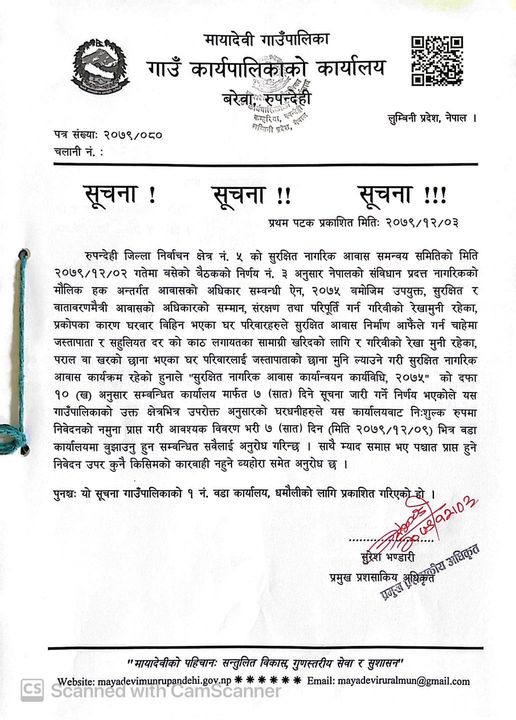 » सूचना - मायादेवी गाउँपालिका, बरेवा-रुपन्देही ।