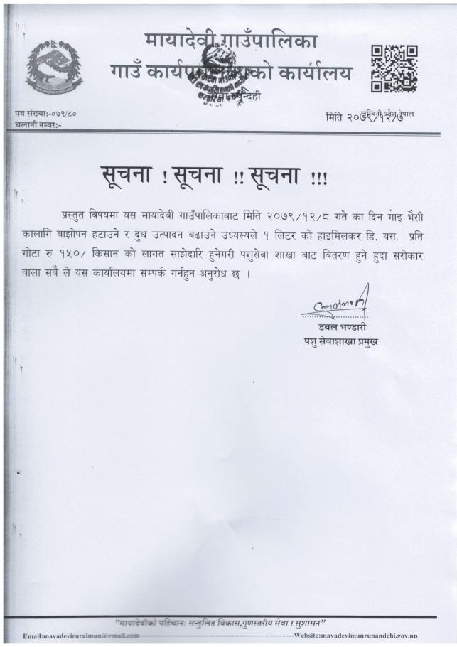 सूचना - मायादेवी गाउँपालिका, बरेवा-रुपन्देही ।