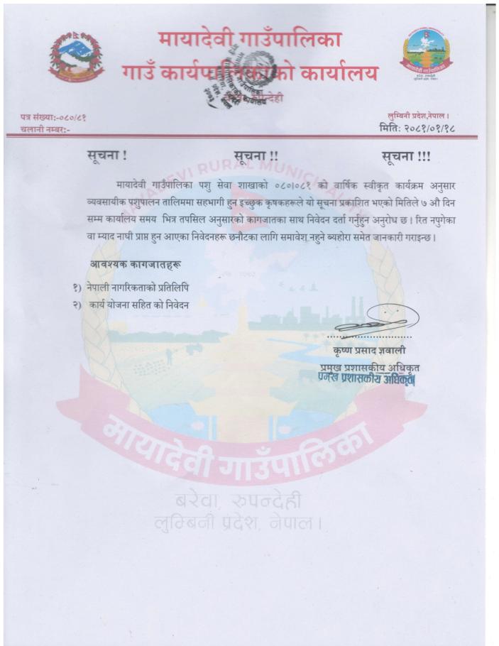 » सूचना - मायादेवी गाउँपालिका, बरेवा-रुपन्देही ।