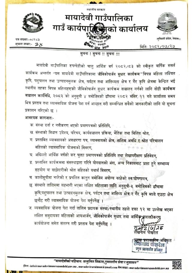 » सूचना - मायादेवी गाउँपालिका, बरेवा-रुपन्देही ।