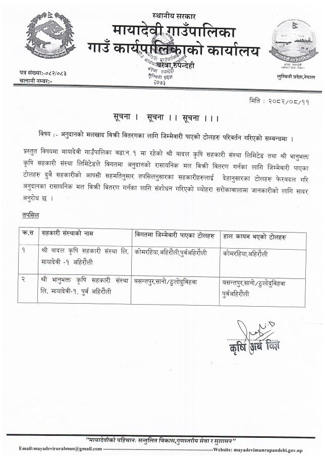 » सूचना - मायादेवी गाउँपालिका, बरेवा-रुपन्देही ।