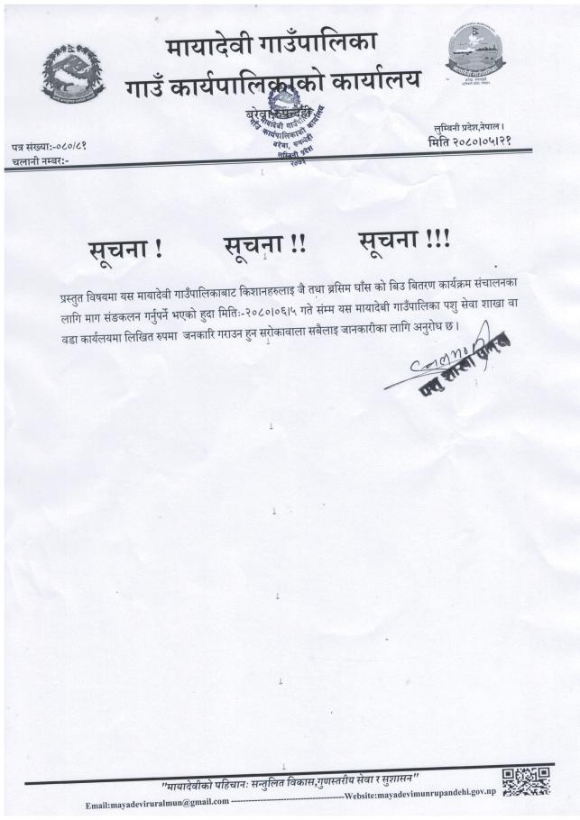 » सूचना - मायादेवी गाउँपालिका, बरेवा-रुपन्देही ।