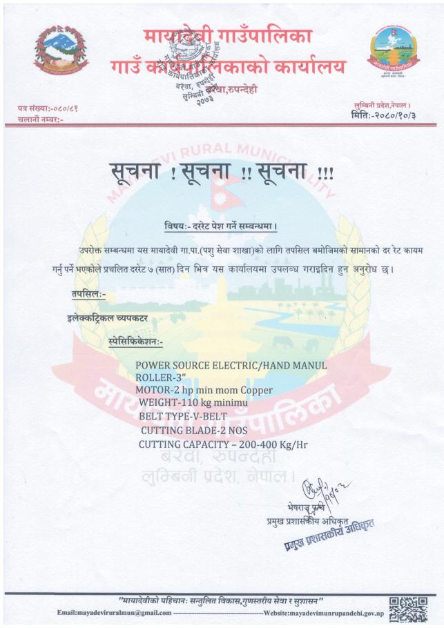 » सूचना - मायादेवी गाउँपालिका, बरेवा-रुपन्देही