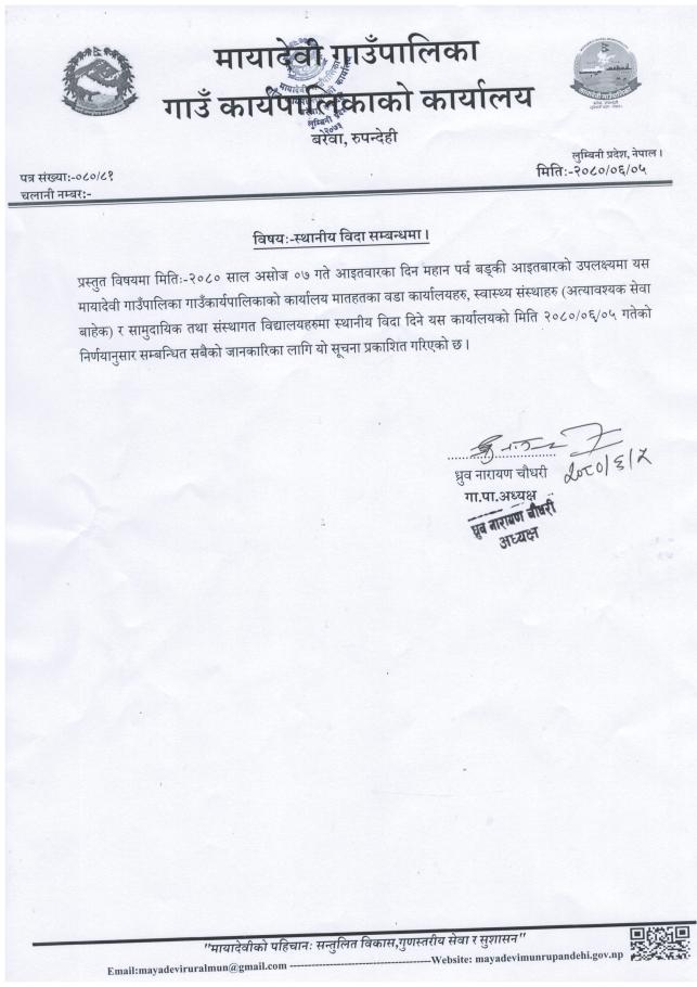 » स्थानिय विदा सम्बन्धमा - मायादेवी गाउँपालिका, बरेवा-रुपन्देही ।