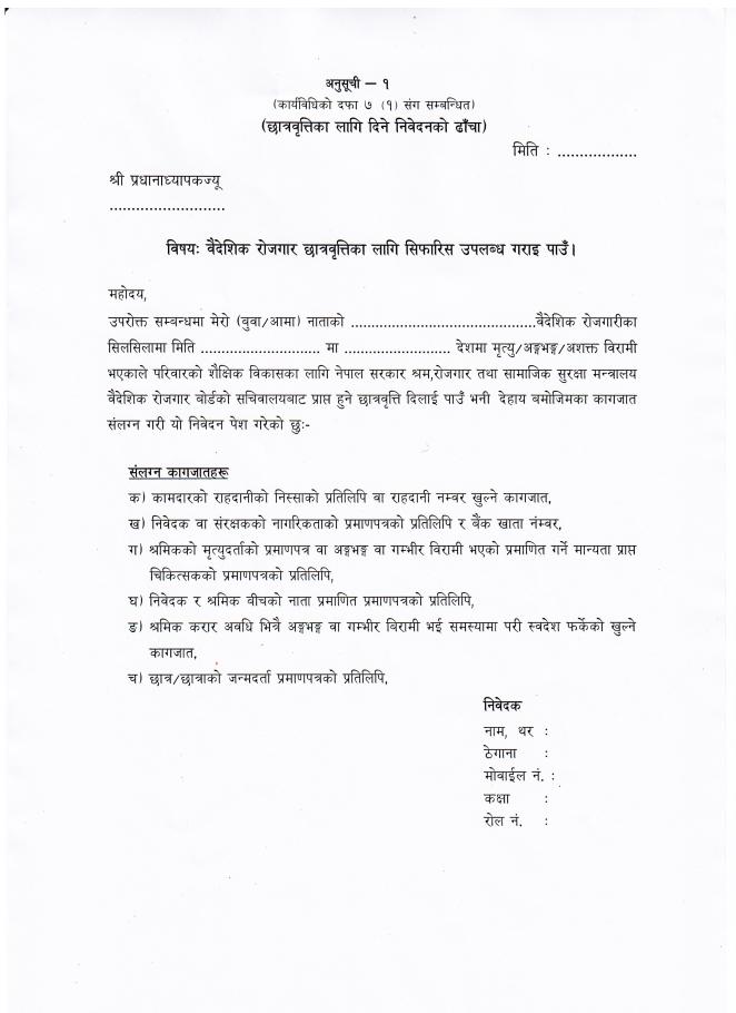 वैदेशिक रोजगार सन्तती छात्रवृति सहायताका लागि निबेदन दिने बारेको सूचना - मायादेवी गाउँपालिका, बरेवा-रुपन्देही ।