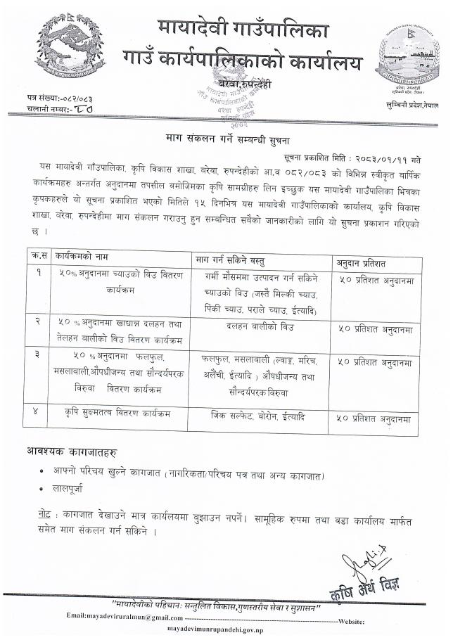 माग संकलन गर्ने सम्बन्धी सूचना !!! - मायादेवी गाउँपालिका, बरेवा, रुपन्देही ।